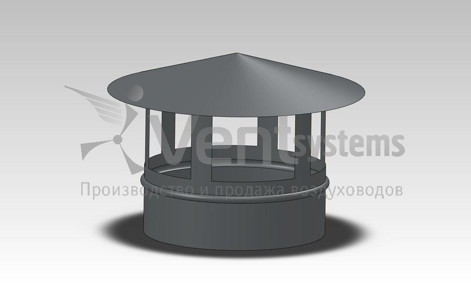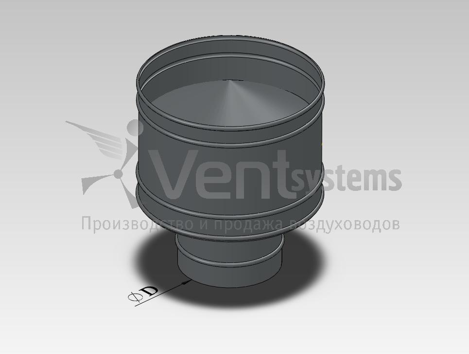 Защитные зонты устанавливаются на концах наружных участков воздуховодов. Прикрывая выходное отверстие, они не позволяют атмосферным осадкам попадать внутрь вентиляционной сети.