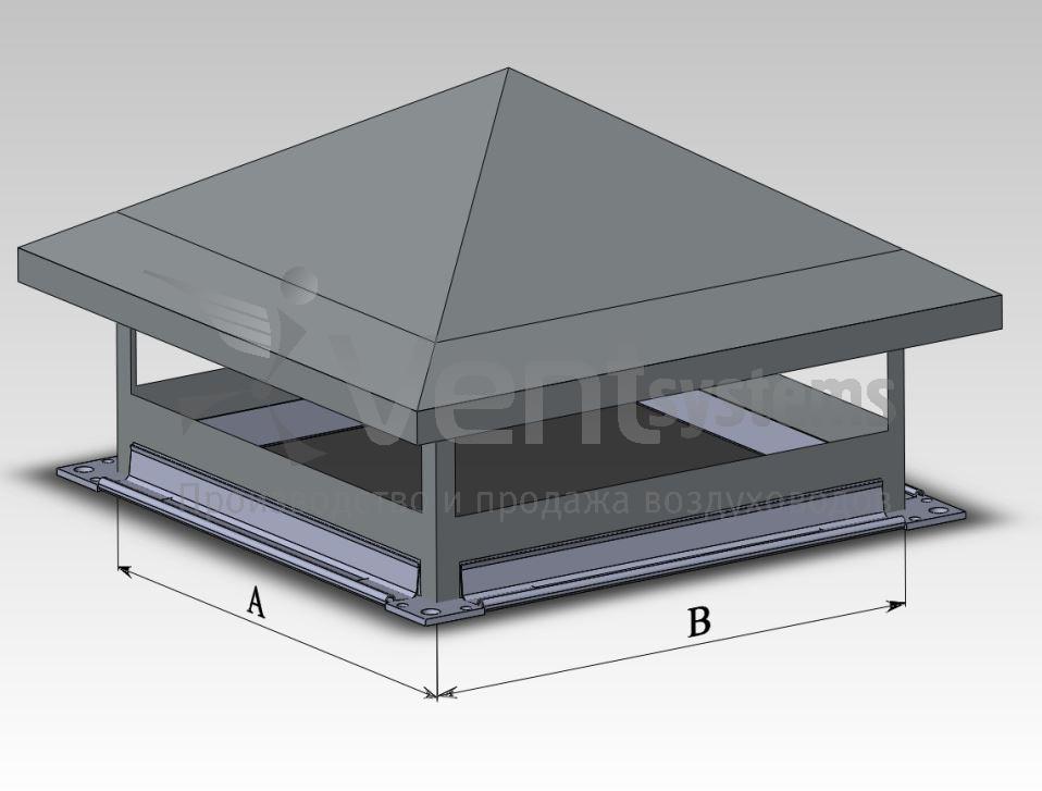 Аналогично воздуховодам, зонты также могут быть круглыми и прямоугольными. Они монтируются с воздуховодами ниппельным соединением. Типоразмер зонтов определяется размером сечения в месте стыка - параметры стыкуемых воздуховода и зонта должны быть соразмерными. Козырек изделия может иметь различные габариты. Возможно изготовление как типовых, так и нестандартных зонтов.